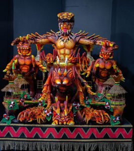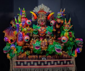 Entre as miniaturas que ficarão disponíveis ao público, Marialvo destaca a que representa o “Ritual Kawahiva”, que estreou no festival de 2019, uma das maiores alegorias que o artista já concebeu. O ritual é da cosmologia Kawahiwa-Parintintin, na qual índios caçadores da tribo são preparados, física e espiritualmente, pelo Pajé antes das caçadas na floresta. A alegoria apresentava as criaturas Serpentum – o homem-cobra, e o Acangaçu – a onça preta dente-de-sabre, entre outras.