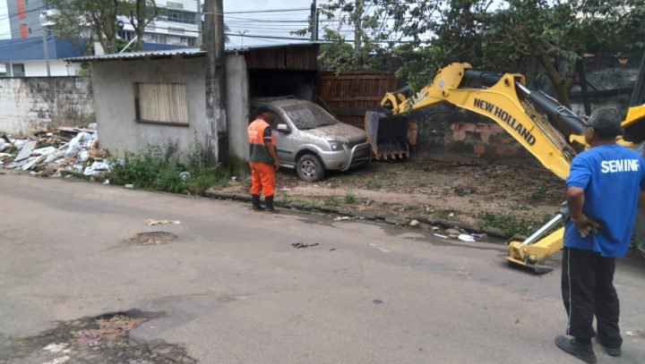 Garagem construída em calçada é demolida em ação integrada da Prefeitura de Manaus