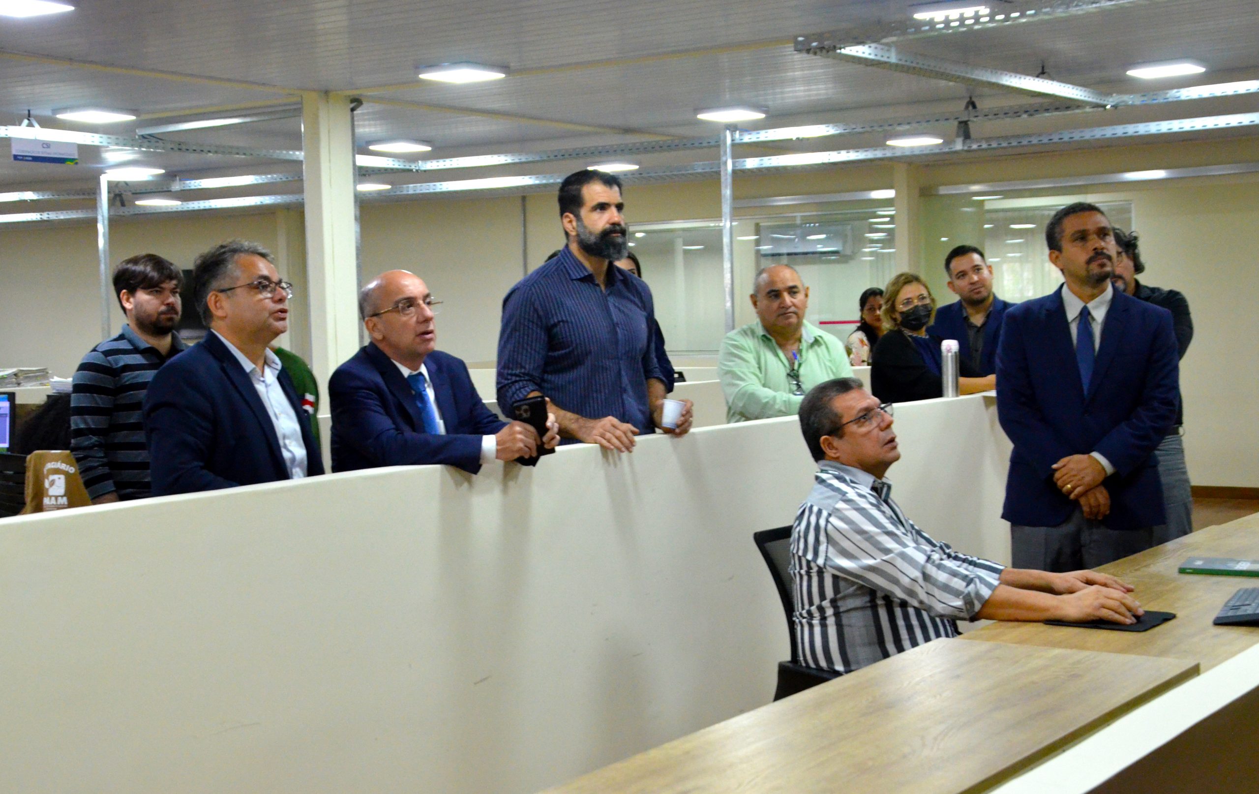 As autoridades visitaram o CMAAP e puderam conhecer a operacionalização da atuação do Ipaam em combate ao desmatamento. O centro integra tecnologia e metodologias geográficas em aplicações estratégicas de embargo remoto e fiscalizações in loco.