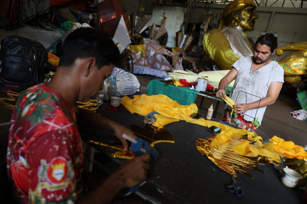 Mais de 2 mil trabalhadores estão envolvidos na preparação das alegorias, fantasias e apresentações musicais neste Carnaval, que vai ser realizado em formato de live, de 17 a 19 de março, no Centro Convenções – Sambódromo. Conforme a Secretaria de Estado de Cultura e Economia Criativa, a geração de renda acontece de forma direta e indireta nos barracões das escolas de samba de Manaus.