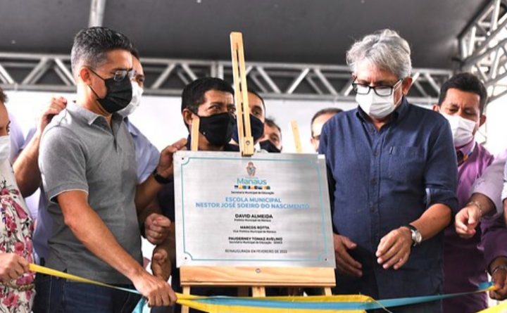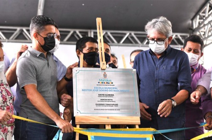 O prefeito de Manaus, David Almeida, entregou completamente revitalizada e ampliada a escola municipal Nestor José Soeiro do Nascimento, localizada no bairro Tarumã, zona Oeste, durante solenidade que marcou o início das aulas presenciais para mais de 220 mil alunos em 480 escolas coordenadas pela Secretaria Municipal de Educação (Semed), na manhã desta segunda-feira, 14/2.