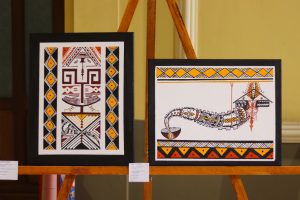 O artista plástico do povo Dessana, Jaime Diakara, mestre e doutorando em antropologia social da Ufam, apresenta na mostra coletiva, quatro obras inspiradas no grafismo do seu povo, em exposição na Mostra Indígena.