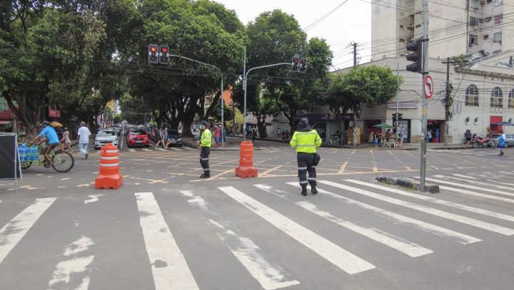 Agentes de trânsito estão no local para orientar os condutores quanto às alterações do trânsito no local.