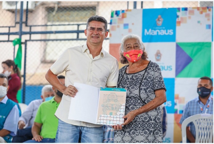 O prefeito de Manaus, David Almeida, entregou nesta segunda-feira, 20/12, os 500 primeiros registros de imóveis de regularização fundiária na quadra da escola municipal Antônio Borges de Sá, no bairro São José Operário, zona Leste da capital, para beneficiar os moradores da comunidade São José dos Campos. Na ocasião, o prefeito comprometeu-se a entregar mais 15 mil títulos até o final de 2022, sem necessidade do pagamento de ônus, assim como nestes primeiros, uma inovação da gestão.