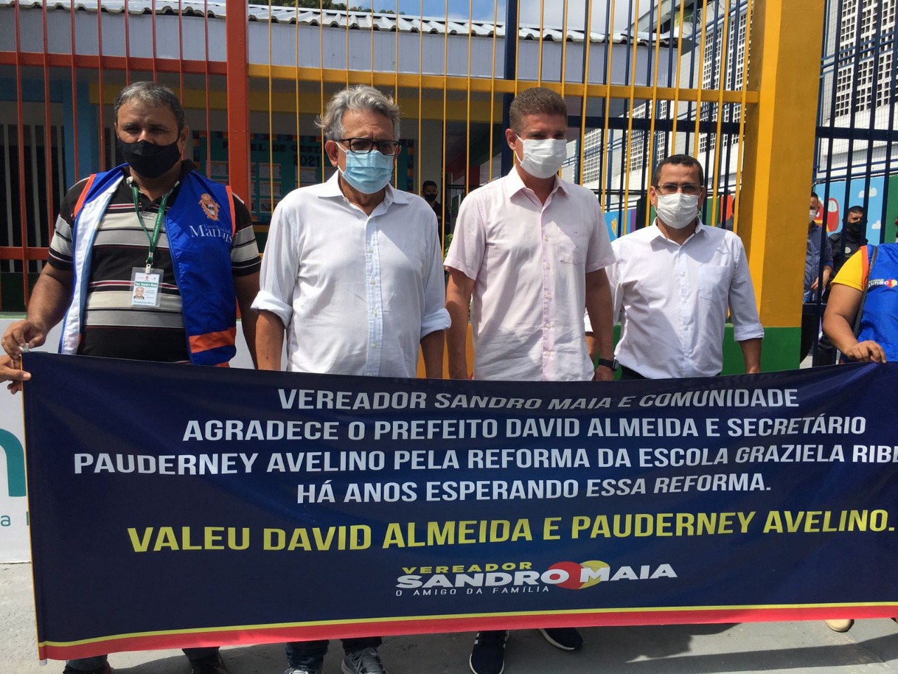 “Quero agradecer ao prefeito de Manaus, David Almeida, e secretário de Educação do município, Pauderney Avelino, pela reforma da escola Graziela Ribeiro. Essa escola que há mais de 8 anos já necessitava dessa revitalização e em um prazo de 3 a 4 meses reformaram o Cmei aqui no bairro Alvorada, muito obrigado a todos” concluiu o vereador Sandro Maia.