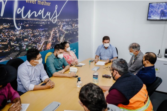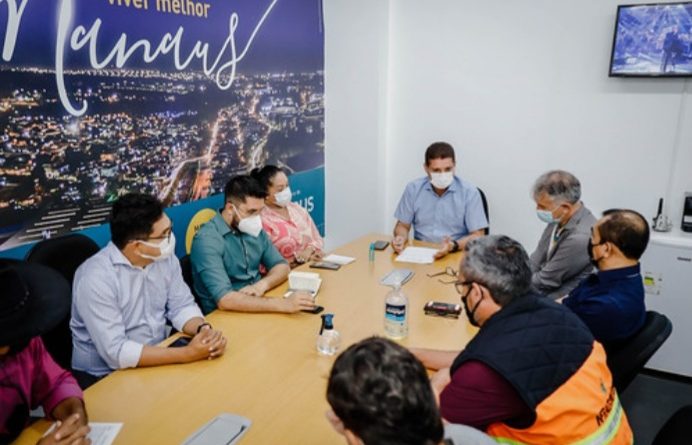 A Prefeitura de Manaus, por meio das secretarias municipais de Infraestrutura (Seminf), Limpeza Urbana (Semulsp), Assistência Social e Cidadania (Semasc), Meio Ambiente e Sustentabilidade (Semmas), e Institutos Municipais de Planejamento Urbano (Implurb) e Mobilidade Urbana (IMMU), montou uma força-tarefa para minimizar os prejuízos causados pelos alagamentos nos bairros da cidade. Em reunião na manhã desta quarta-feira, 26/1, na sede da Seminf, no bairro Aleixo, zona Centro-Sul, os representantes dos órgãos envolvidos discutiram estratégias e pontos de atuação. O prefeito David Almeida participou da reunião de forma remota, dando as coordenadas sobre os trabalhos.