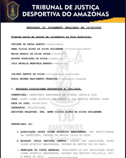 Por fim, o presidente do Atlético-AM, Henrique Costa Barbosa, foi julgado com base nos artigos 243-A (atuar, de forma contrária à ética desportiva, com o fim de influenciar o resultado de partida, prova ou equivalente) e 243-B. (constranger alguém, mediante violência, grave ameaça ou por qualquer outro meio, a não fazer o que a lei permite ou a fazer o que ela não manda), mas acabou absolvido.